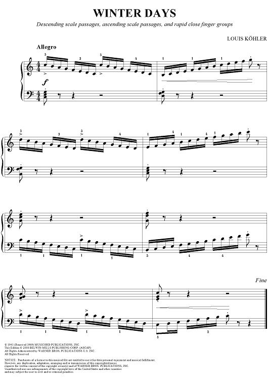 Digital Sheet Music for Winter Days by Louis Köhler scored for Easy Piano; id:295768