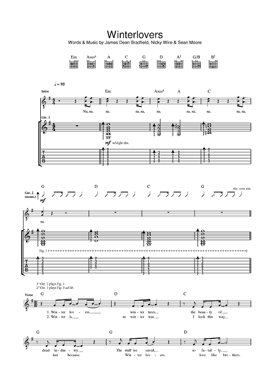 Digital Sheet Music for Winterlovers by James Dean Bradfield, The Manic Street Preachers, Sean Moore, Nicky Wire scored for Guitar Tab; id:401633