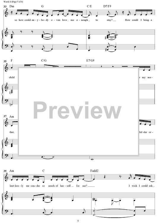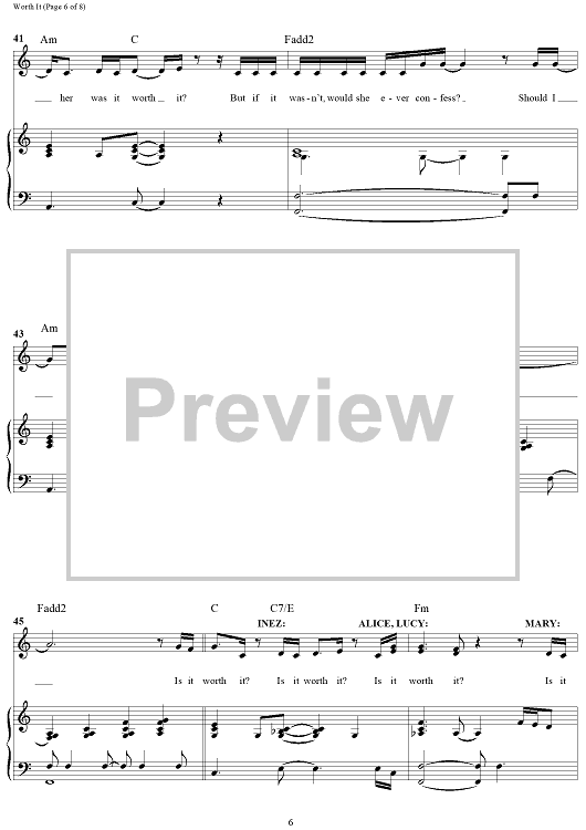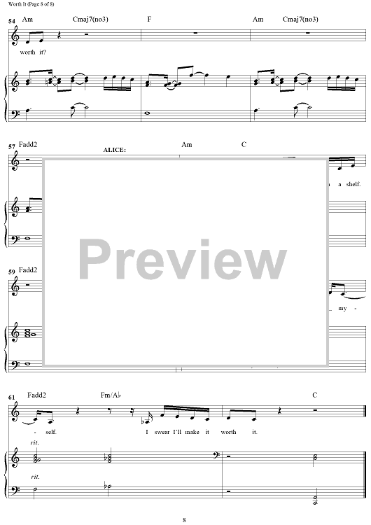 Digital Sheet Music for Worth It (from Suffs) by Shaina Taub scored for Piano/Vocal/Chords; id:503658
