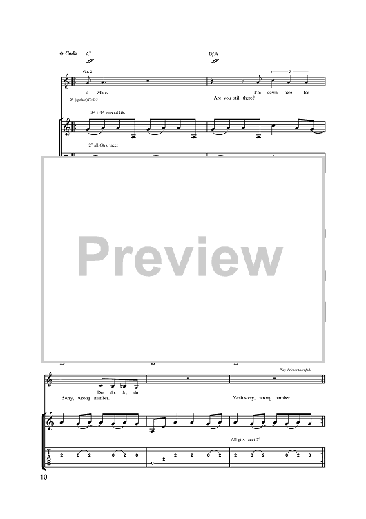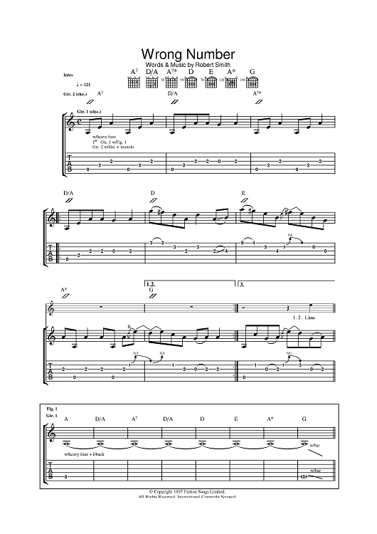 Digital Sheet Music for Wrong Number by Wolfman Jack, The Cure scored for Guitar Tab; id:396368