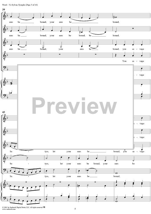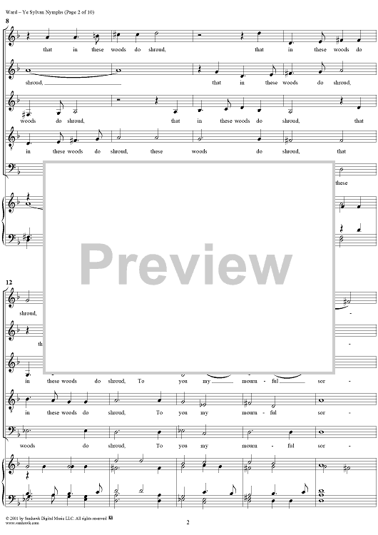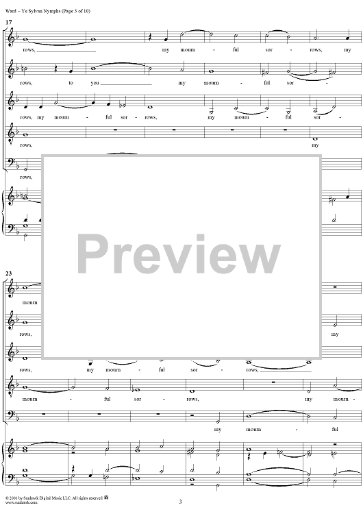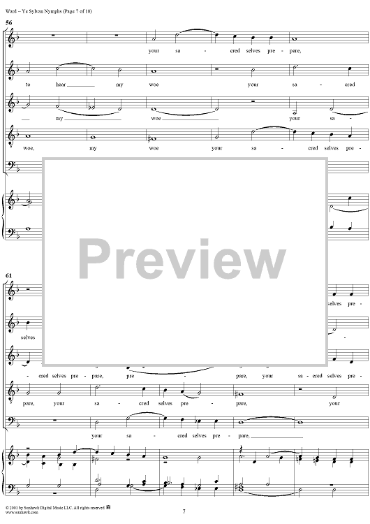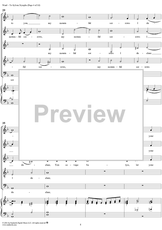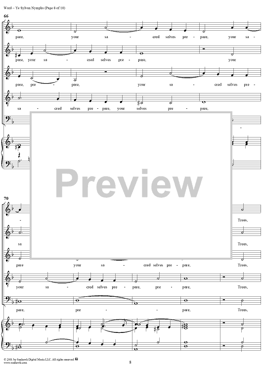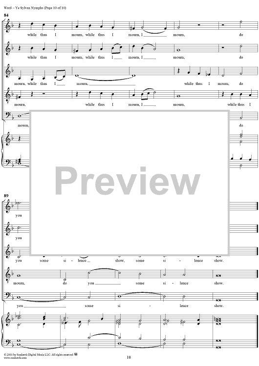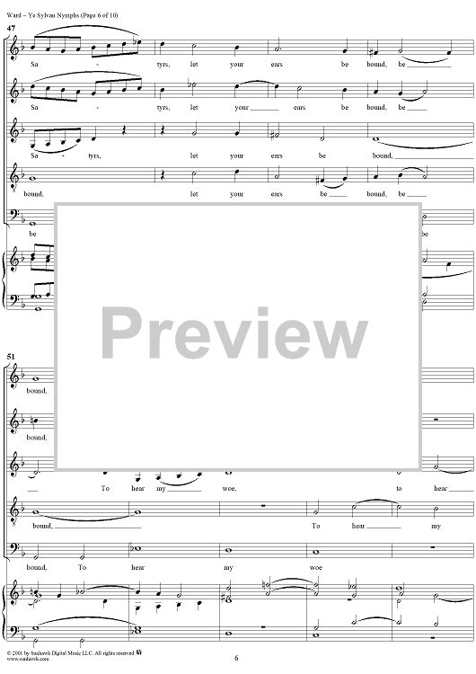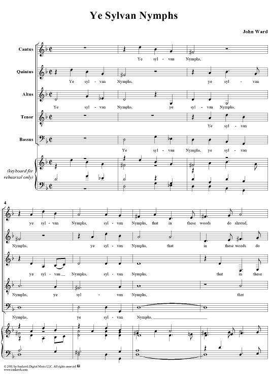 Digital Sheet Music for Ye Sylvan Nymphs by John Ward scored for Mixed Chorus; id:249584
