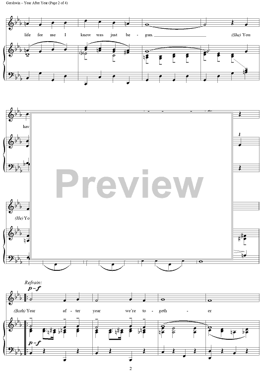 Digital Sheet Music for Year After Year by George Gershwin, Buddy DeSylva scored for Piano/Vocal/Chords; id:312657