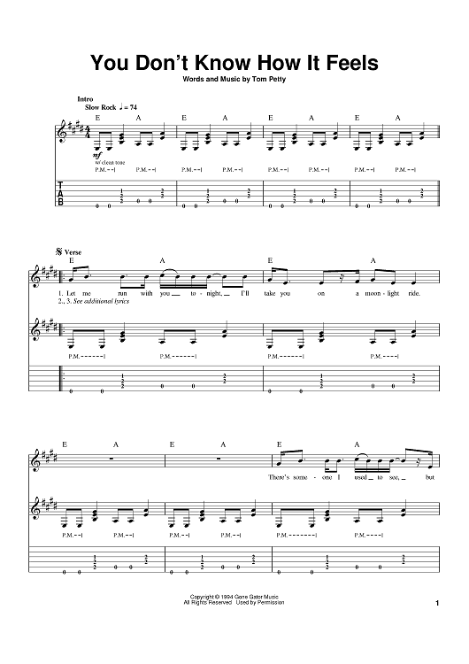 Digital Sheet Music for You Don't Know How It Feels by Tom Petty scored for Guitar Tab; id:397398