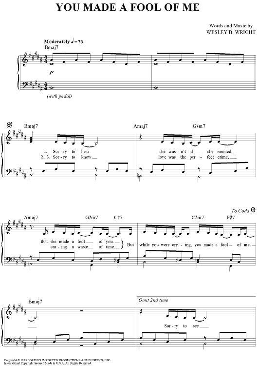 Digital Sheet Music for You Made a Fool of Me by Miami Sound Machine, Wesley B. Wright scored for Piano/Vocal/Chords; id:456310