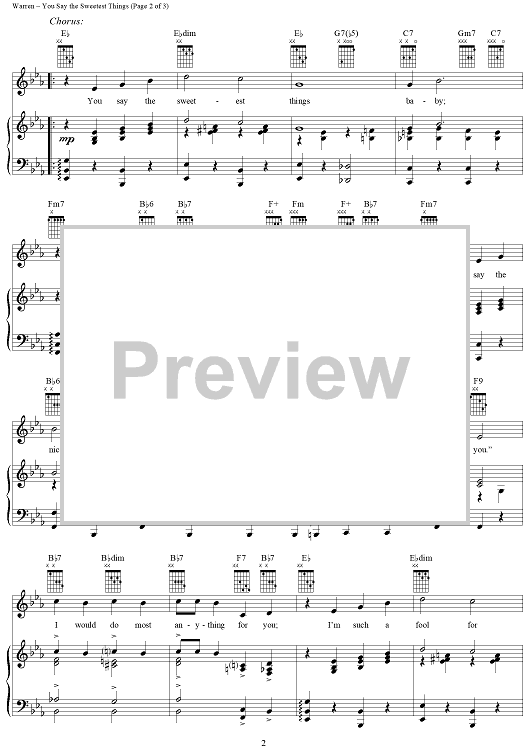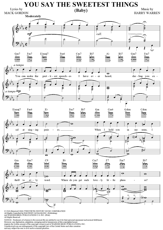 Digital Sheet Music for You Say the Sweetest Things by Harry Warren, Mack Gordon scored for Piano/Vocal/Chords; id:305424
