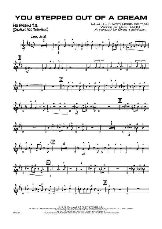 Digital Sheet Music for You Stepped Out of a Dream - Baritone 3 TC by Nacio Herb Brown, Gus Kahn, Greg Yasinitsky scored for Jazz Ensemble; id:360466