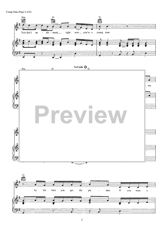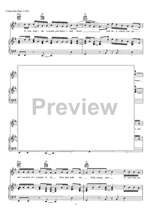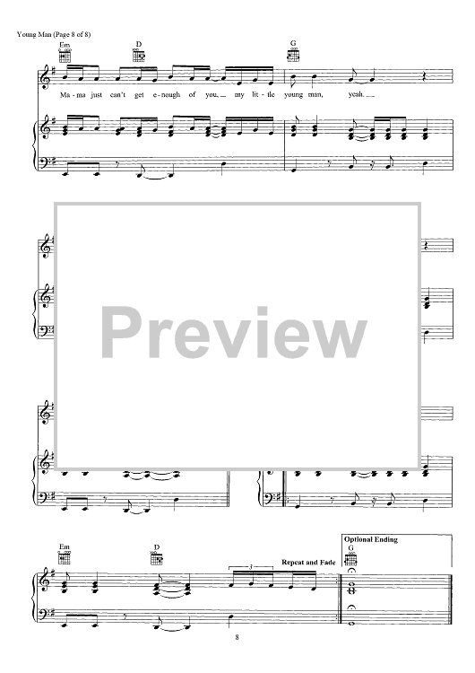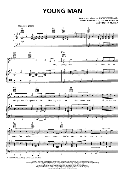 Digital Sheet Music for Young Man by Jerome Harmon, James Fauntleroy II, Timothy Mosely, Justin Timberlake scored for Piano/Vocal/Chords; id:466458