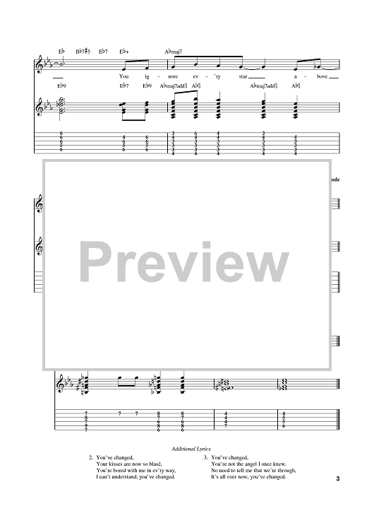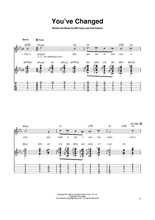Digital Sheet Music for You've Changed by Bill Carey, Carl Fischer, Connie Russell scored for Easy Guitar Tab; id:375095