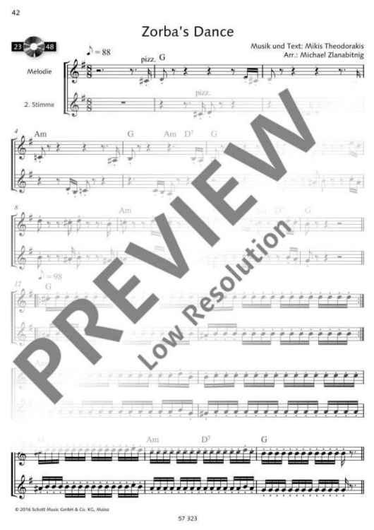Digital Sheet Music for Zorba's Dance by Mikis Theodorakis, Michael Zlanabitnig scored for 1-2 Violins; id:489766