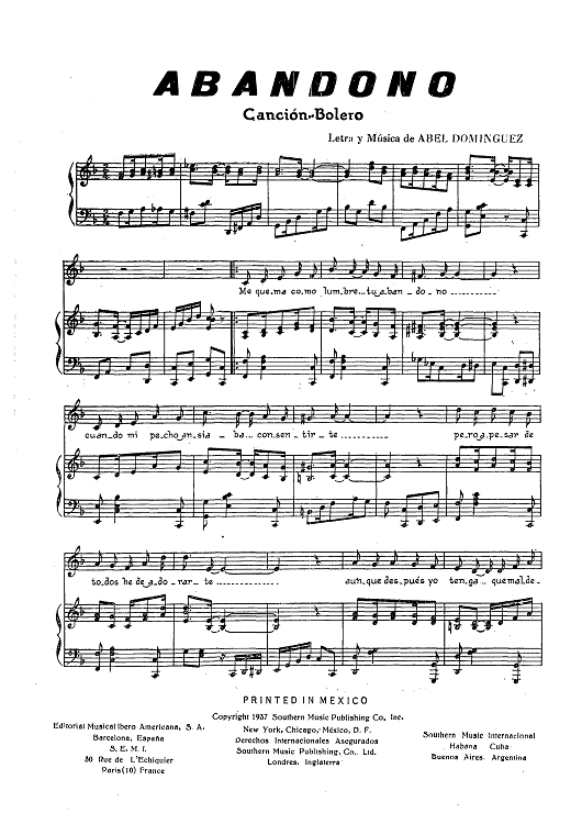 Digital Sheet Music for Abandono - Cancion Bolero by Abel Dominguez scored for Piano/Vocal; id:419200