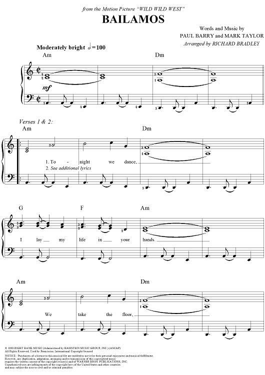 Digital Sheet Music for Bailamos by Enrique Iglesias, Richard Bradley, Timothy Gatlin, Mark Taylor scored for Easy Piano/Vocal; id:274497