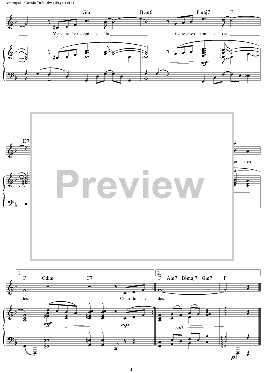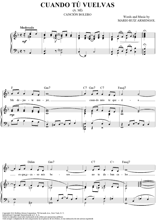 "Cuando Tú Vuelvas (a Mi) - Cancion Bolero" Sheet Music by Mario Ruiz Armengol