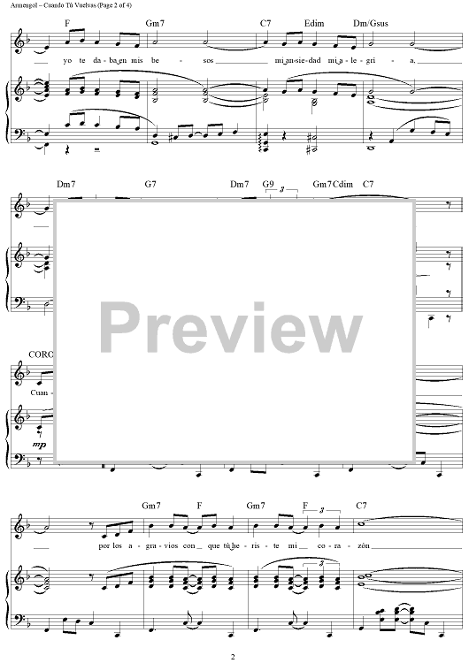 Digital Sheet Music for Cuando Tú Vuelvas (a Mi) - Cancion Bolero by Mario Ruiz Armengol scored for Piano/Vocal; id:422806