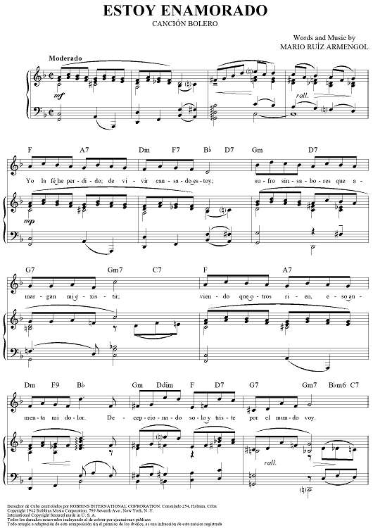 "Estoy Enamorado - Cancion Bolero" Sheet Music by Mario Ruiz Armengol