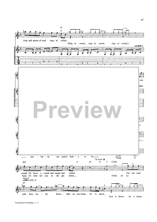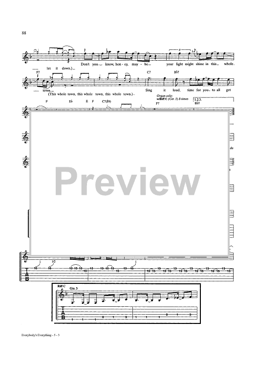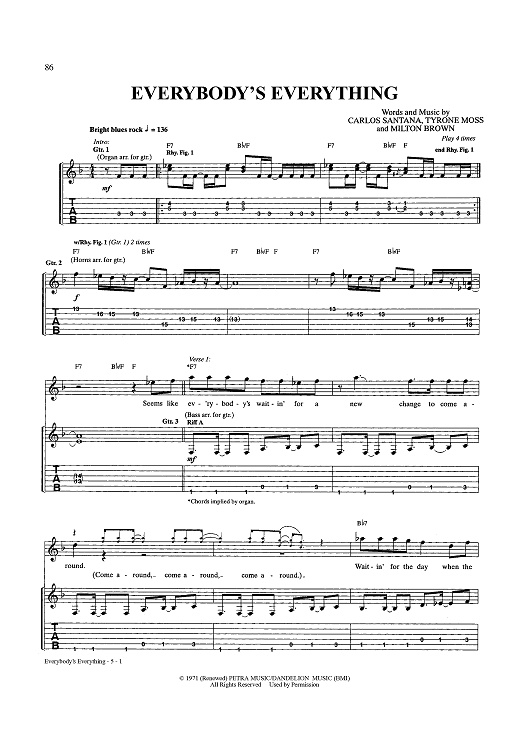 Digital Sheet Music for Everybody's Everything by Carlos Santana, Milton Brown, Tyrone Moss, Santana scored for Guitar Tab/Vocal; id:360399