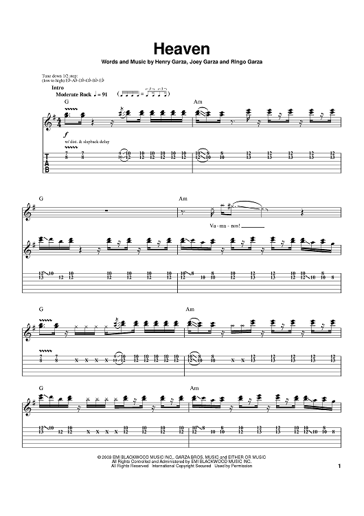 Digital Sheet Music for Heaven by Henry Garza, Joey Garza, Ringo Garza, Los Lonely Boys scored for Guitar Tab; id:380528
