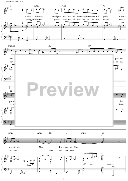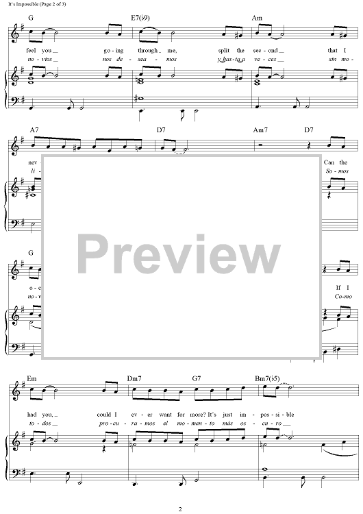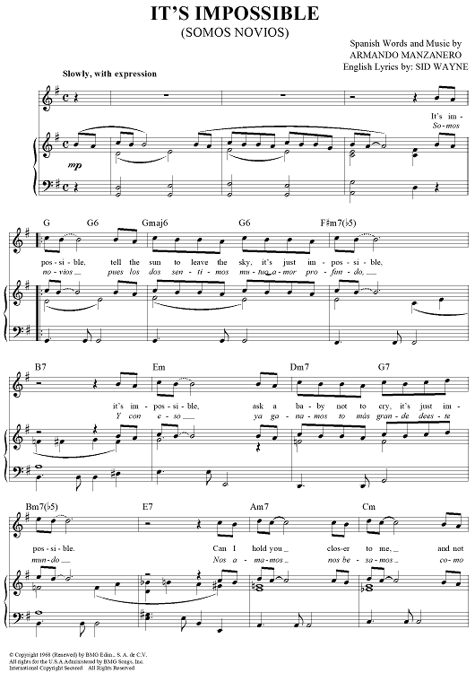 Digital Sheet Music for It's Impossible (Somos Novios) by Perry Como, Sid Wayne, Armando Manzanero, Vikki Carr scored for Piano/Vocal/Chords; id:360915