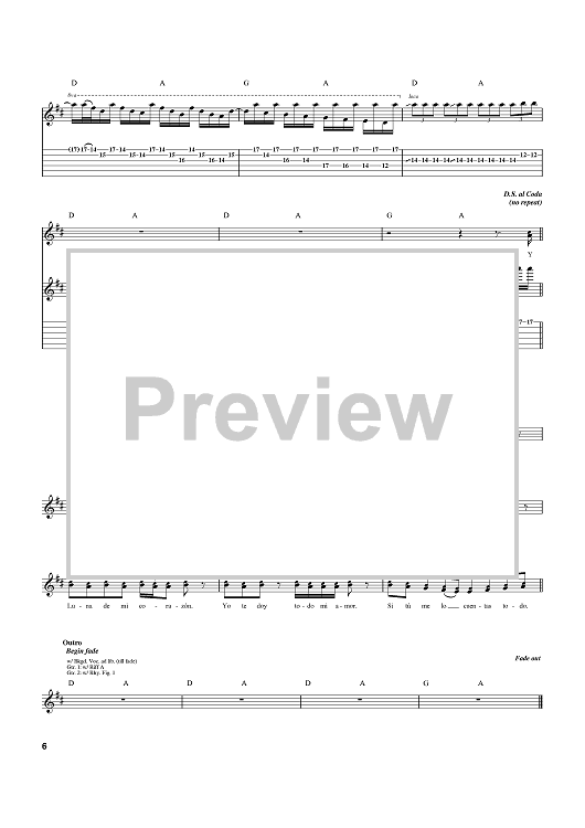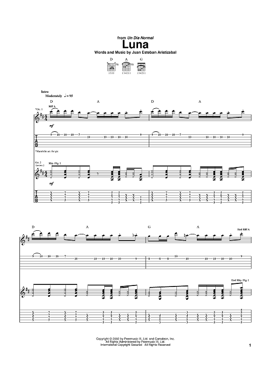Digital Sheet Music for Luna by Juanes scored for Guitar Tab; id:373265