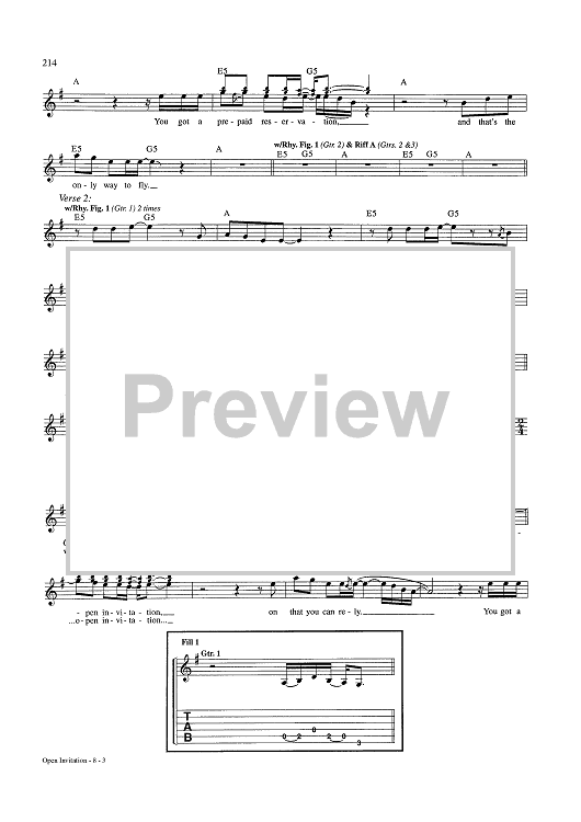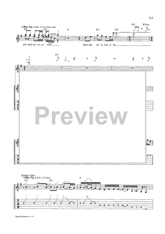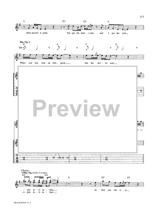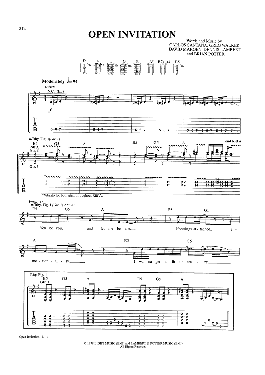 Digital Sheet Music for Open Invitation by Dennis Lambert, Carlos Santana, Brian Potter, Greg Walker, David Margen, Santana scored for Guitar Tab/Vocal; id:360397
