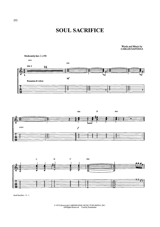 Digital Sheet Music for Soul Sacrifice by Carlos Santana, Santana scored for Guitar Tab; id:360396