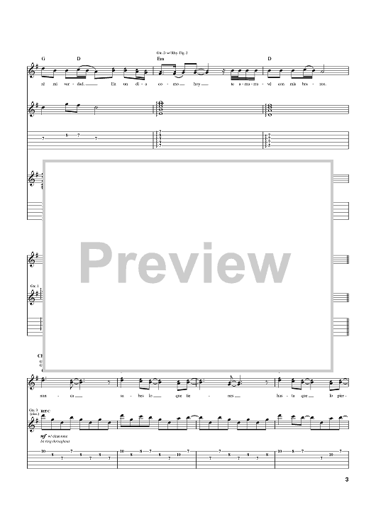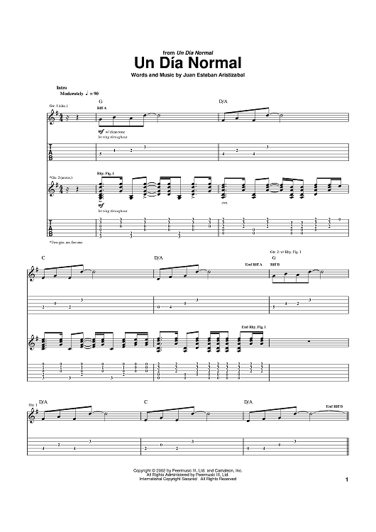 Digital Sheet Music for Un Dia Normal by Juanes scored for Guitar Tab; id:373269