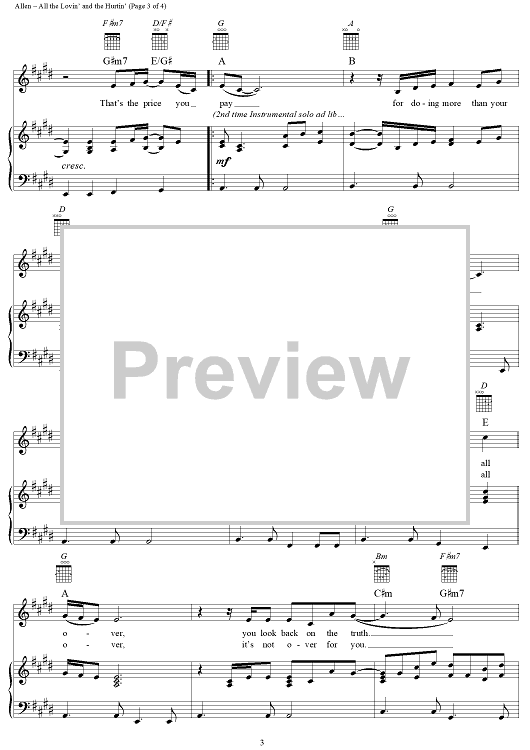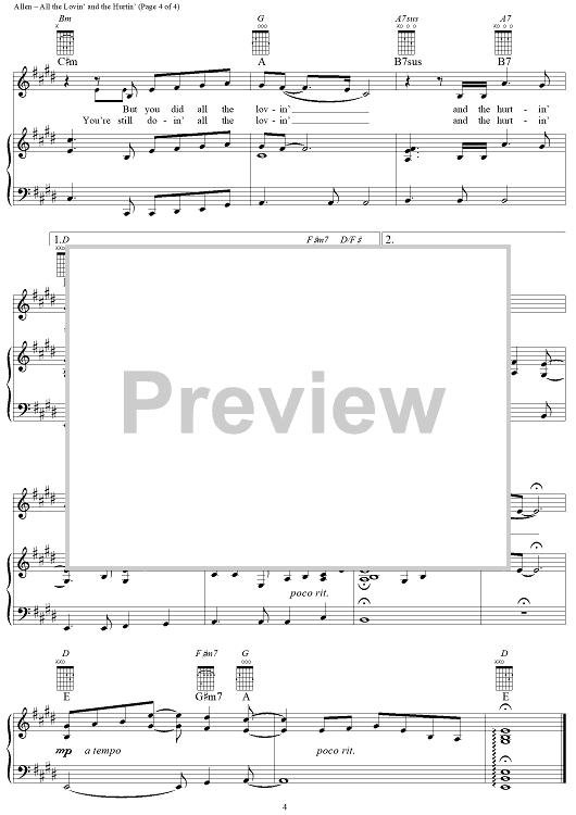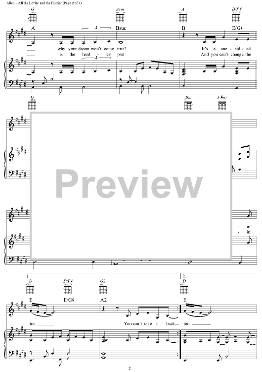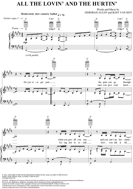 Digital Sheet Music for All the Lovin' and the Hurtin' by LeAnn Rimes, Deborah Allen, Rafe Van Hoy scored for Piano/Vocal/Chords; id:115883