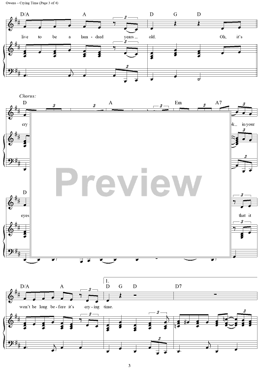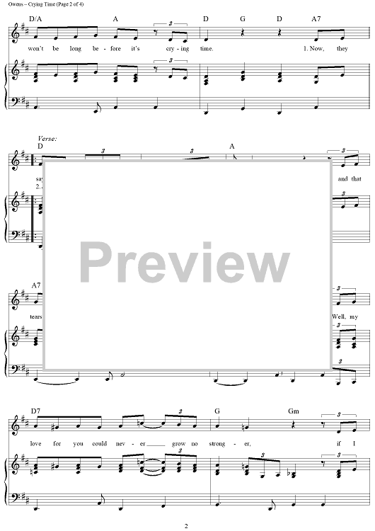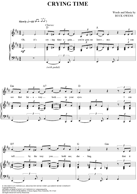 Digital Sheet Music for Crying Time by LeAnn Rimes, Buck Owens scored for Piano/Vocal/Chords; id:410821
