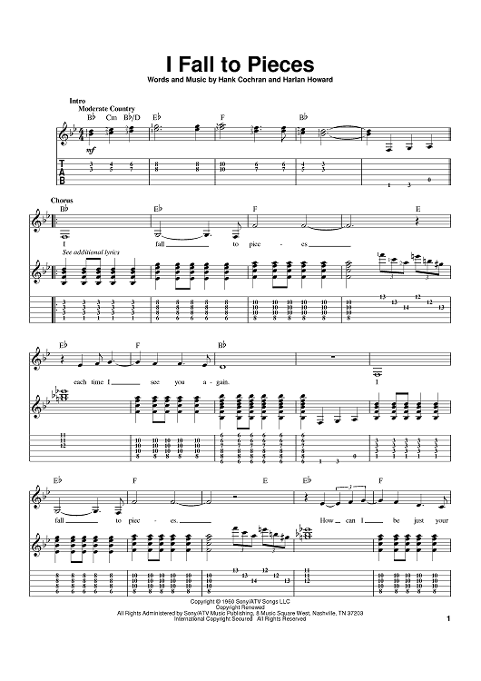 Digital Sheet Music for I Fall To Pieces by LeAnn Rimes, Patsy Cline, Harlan Howard, Hank Cochran scored for Guitar Tab; id:397586