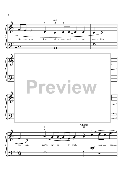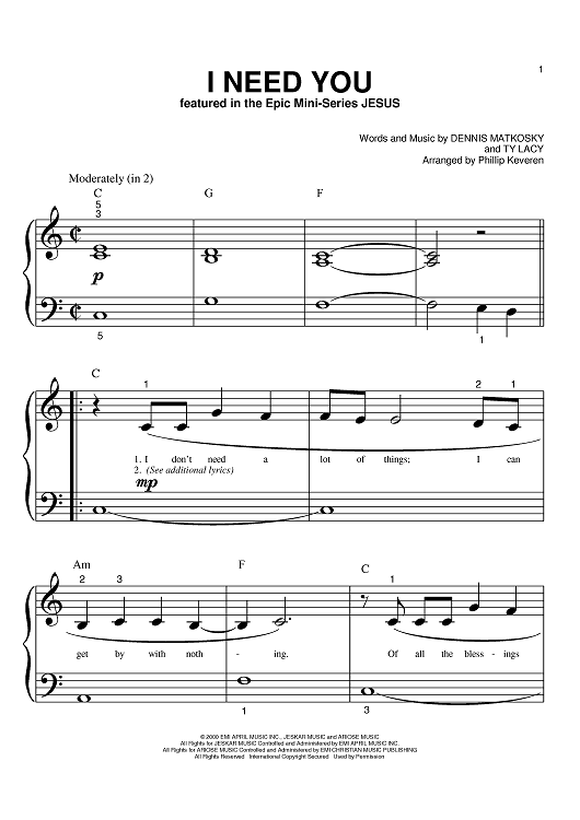 Digital Sheet Music for I Need You by LeAnn Rimes, Dennis Matkosky, Ty Lacy, Phillip Keveren scored for Big Note Piano; id:396694