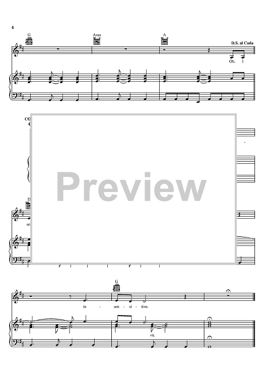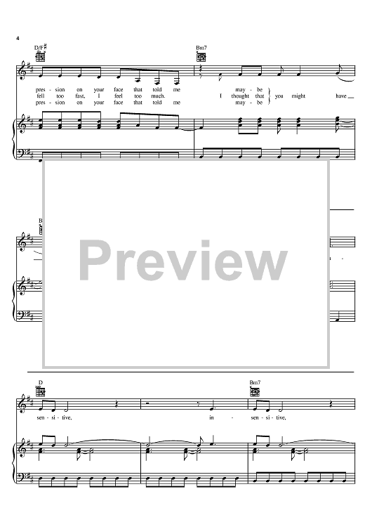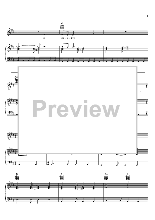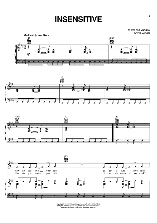 Digital Sheet Music for Insensitive by LeAnn Rimes, Jann Arden, Anne Loree scored for Piano/Vocal/Chords; id:392807