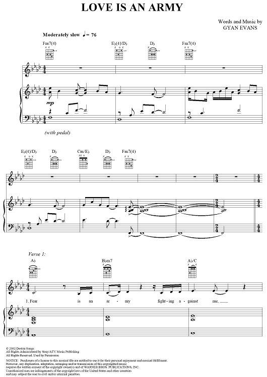 Digital Sheet Music for Love Is an Army by LeAnn Rimes, Gyan Evans scored for Piano/Vocal/Chords; id:294108
