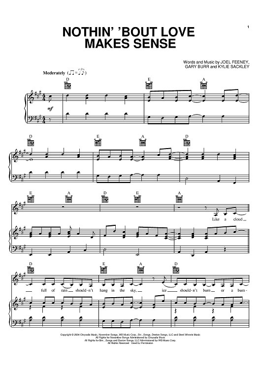 Digital Sheet Music for Nothin 'Bout Love Makes Sense by LeAnn Rimes, Gary Burr, Joel Feeney, Kylie Sackley scored for Piano/Vocal/Chords; id:380450