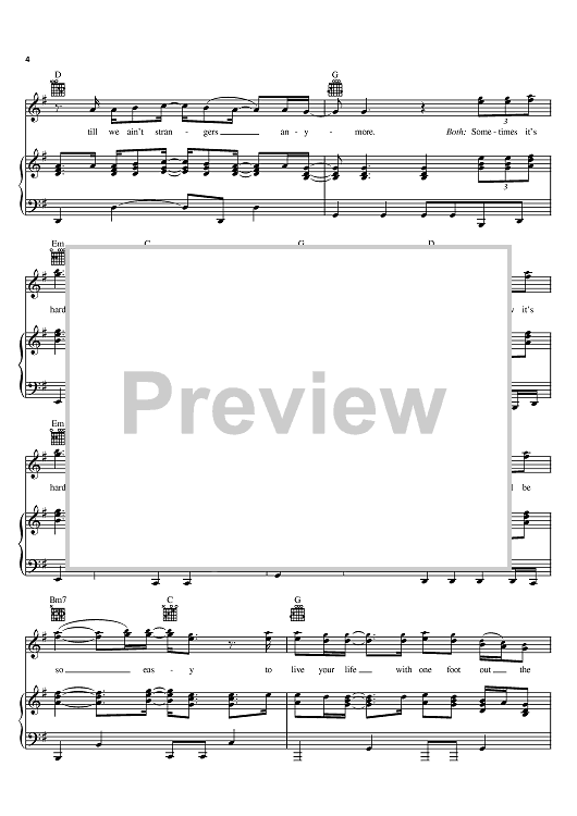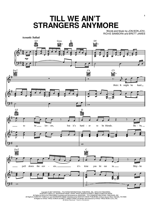 Digital Sheet Music for Till We Ain't Strangers Anymore by LeAnn Rimes, Bon Jovi, Richie Sambora, Jon Bon Jovi, Brett James scored for Piano/Vocal/Chords; id:401753