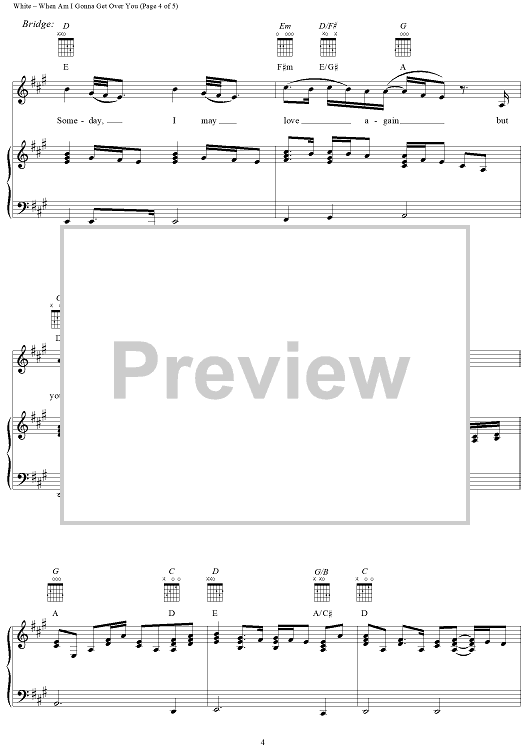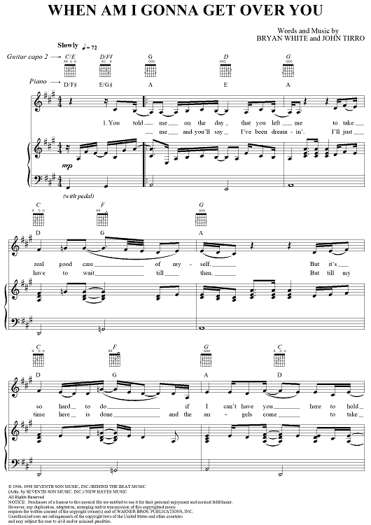 Digital Sheet Music for When Am I Gonna Get Over You by LeAnn Rimes, Bryan White, John Tirro scored for Piano/Vocal/Chords; id:113680