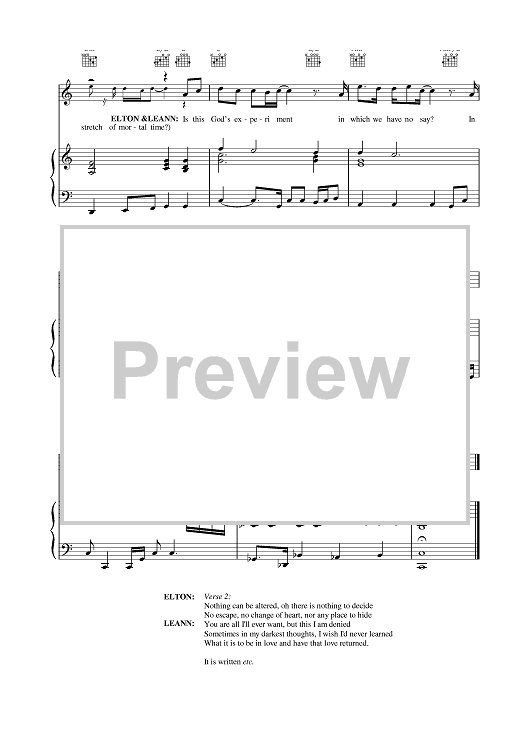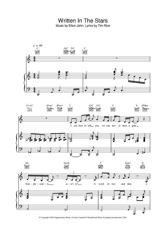 Digital Sheet Music for Written In The Stars by LeAnn Rimes, Elton John scored for Piano/Vocal/Chords; id:377268