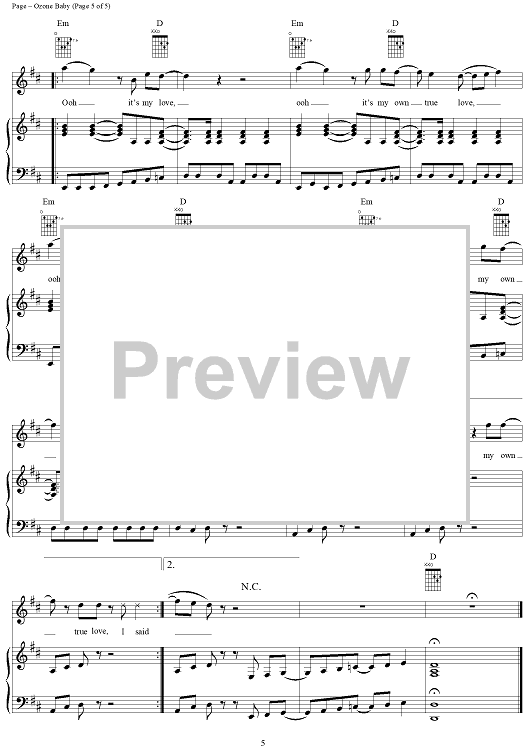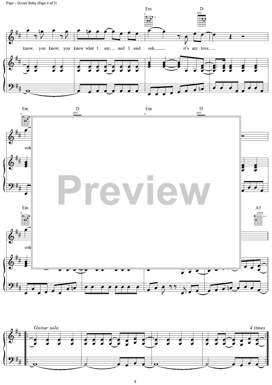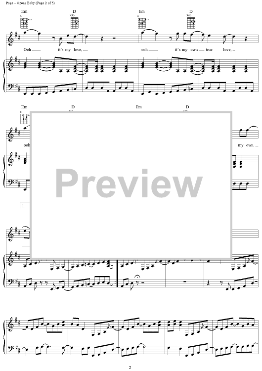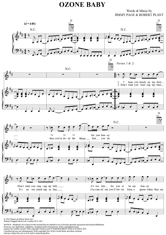 Digital Sheet Music for Ozone Baby by Jimmy Page, Led Zeppelin, Robert Plant scored for Piano/Vocal/Chords; id:253789
