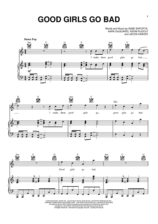 Digital Sheet Music for Good Girls Go Bad by Kara DioGuardi, Cobra Starship, Leighton Meester, Gabe Saporta, Kevin Rudolf, Jacob Kasher scored for Piano/Vocal/Chords; id:410876