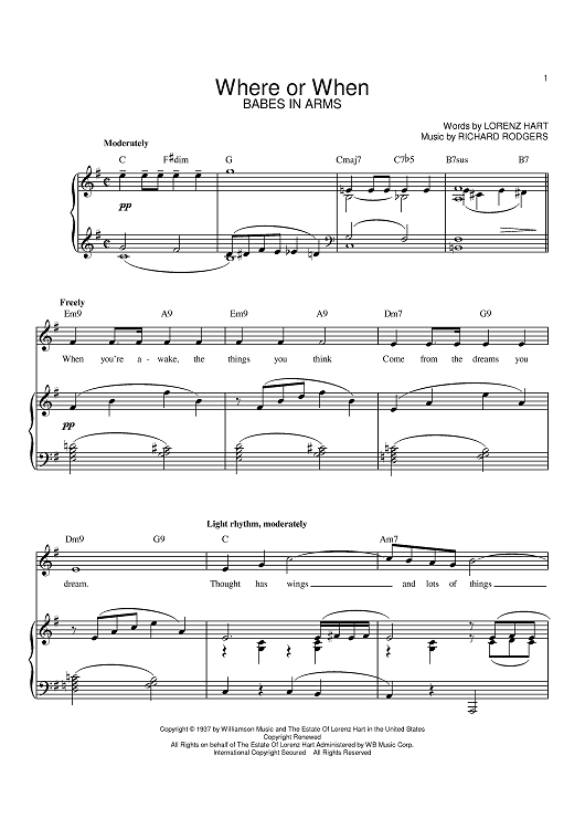 Digital Sheet Music for Where Or When by Judy Garland, Frank Sinatra, Celine Dion, Richard Rodgers, Lorenz Hart, Lena Horne scored for Piano/Vocal/Chords; id:397194