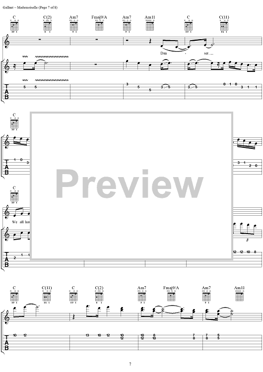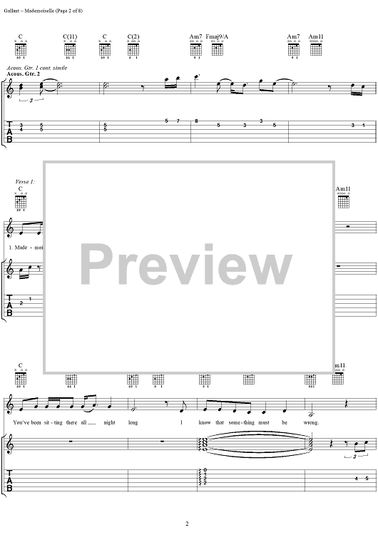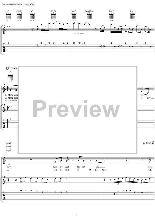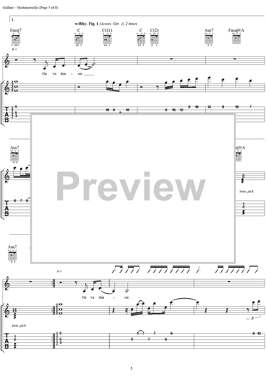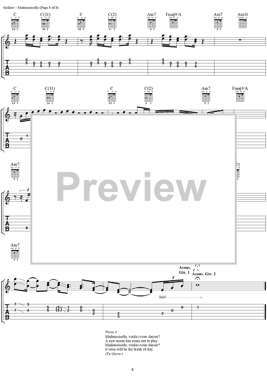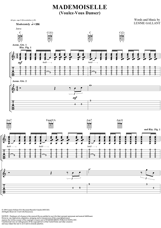 Digital Sheet Music for Mademoiselle (Voulez-Vous Danser) by Jimmy Buffett, Lennie Gallant scored for Guitar Tab/Vocal; id:293597