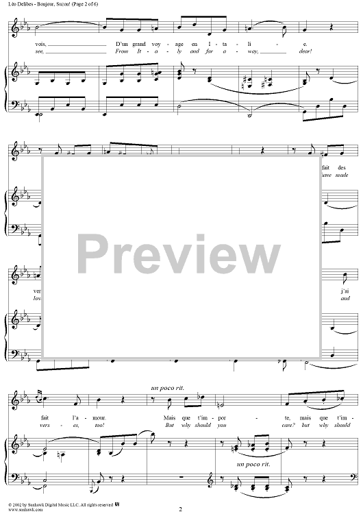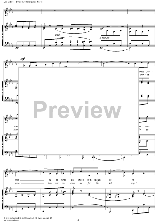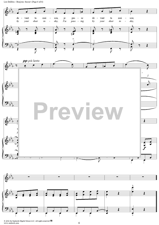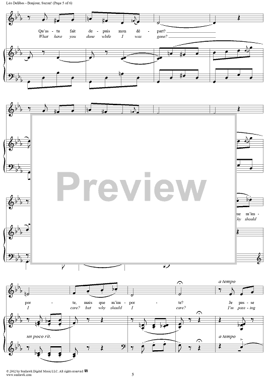 Digital Sheet Music for Bonjour, Suzon! by Alfred de Musset, Leo Delibes scored for Voice/Piano; id:271275