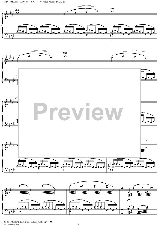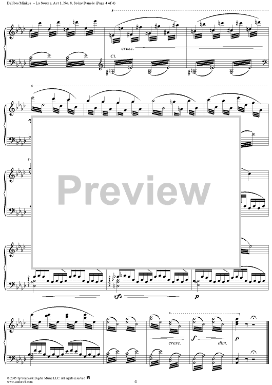 Digital Sheet Music for La Source, Act 1, No. 8: Scène Dansée by Léon Minkus, Leo Delibes scored for Piano Solo; id:295478