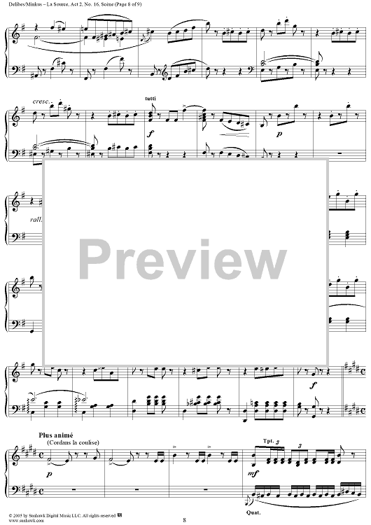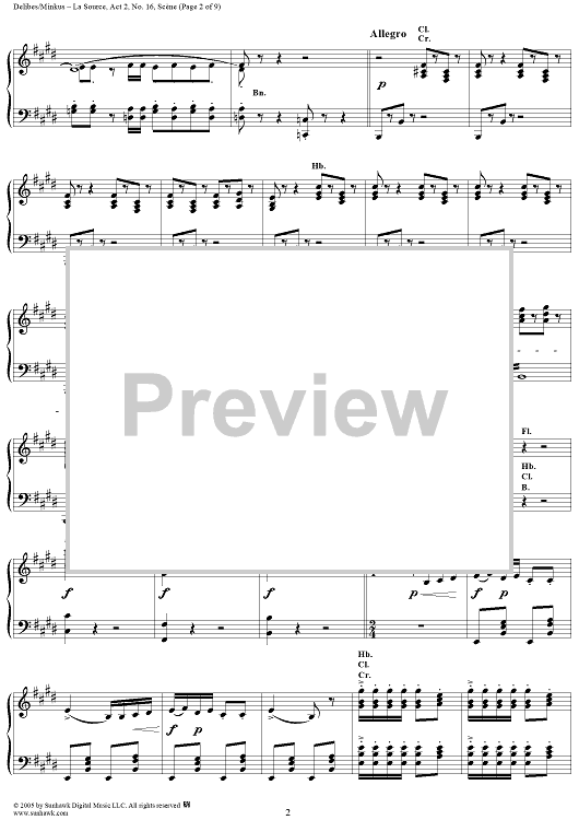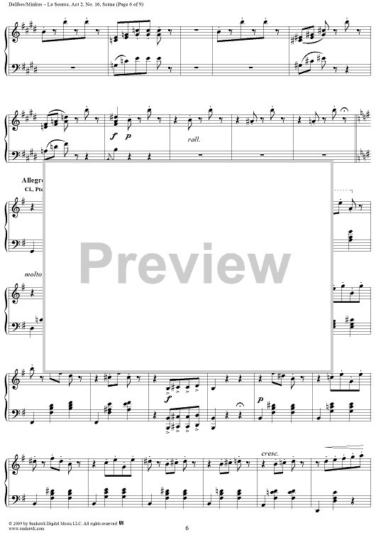 Digital Sheet Music for La Source, Act 2, No. 16: Scène by Léon Minkus, Leo Delibes scored for Piano Solo; id:295488