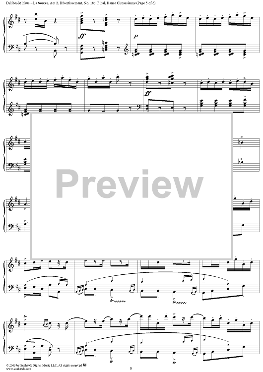 Digital Sheet Music for La Source, Act 2, No. 18d: Divertissement - Final, Danse Circassienne by Léon Minkus, Leo Delibes scored for Piano Solo; id:295493