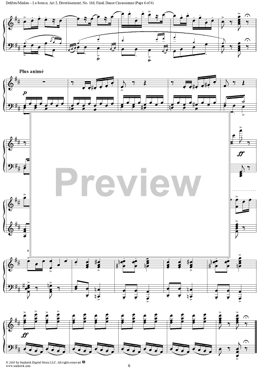 "La Source, Act 2, No. 18d: Divertissement - Final, Danse Circassienne" Sheet Music by Léon Minkus