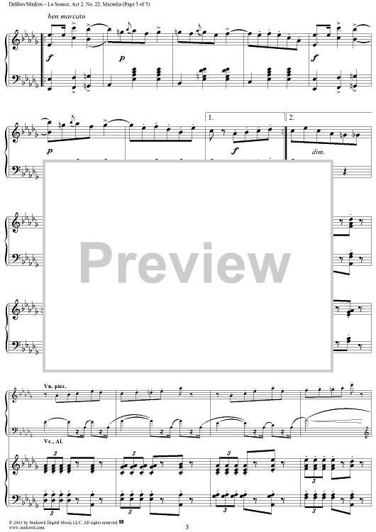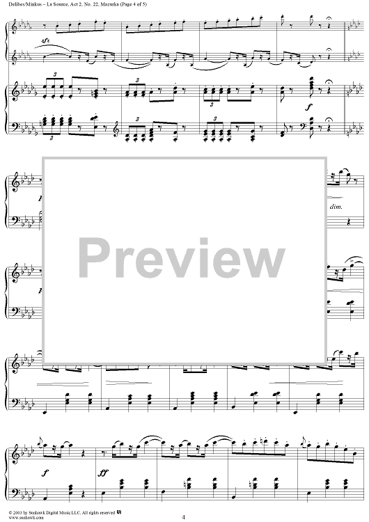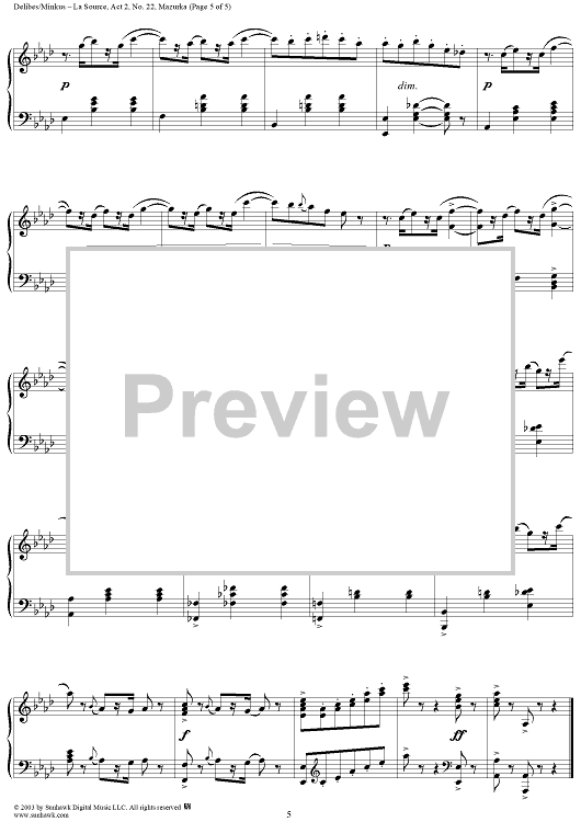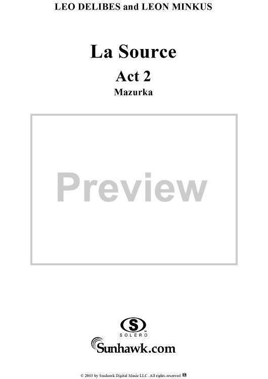 Digital Sheet Music for La Source, Act 2, No. 22: Mazurka by Léon Minkus, Leo Delibes scored for Piano Solo; id:295497