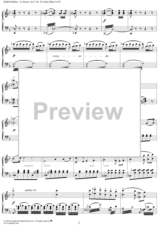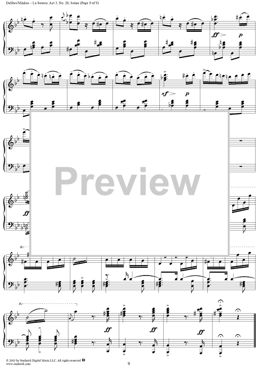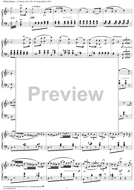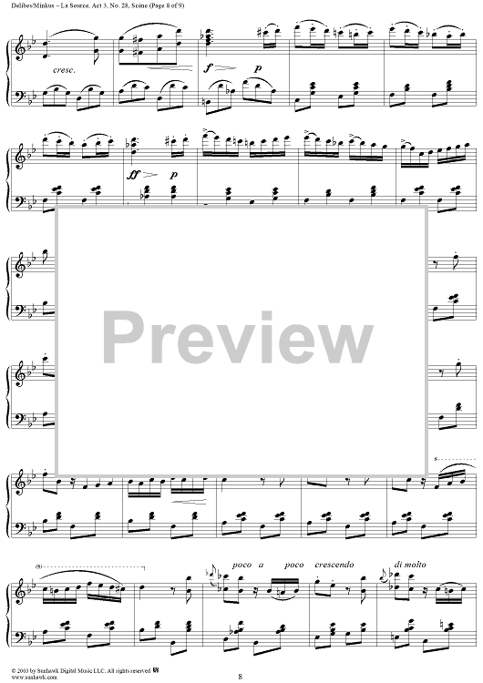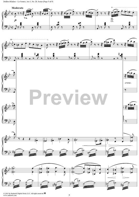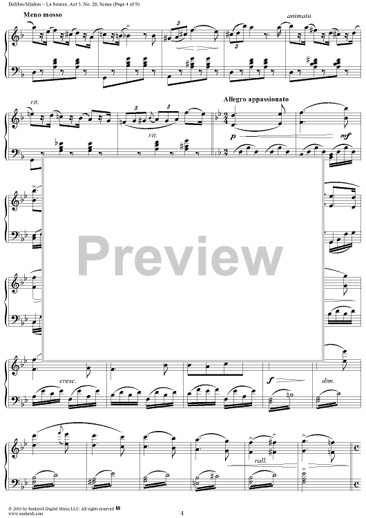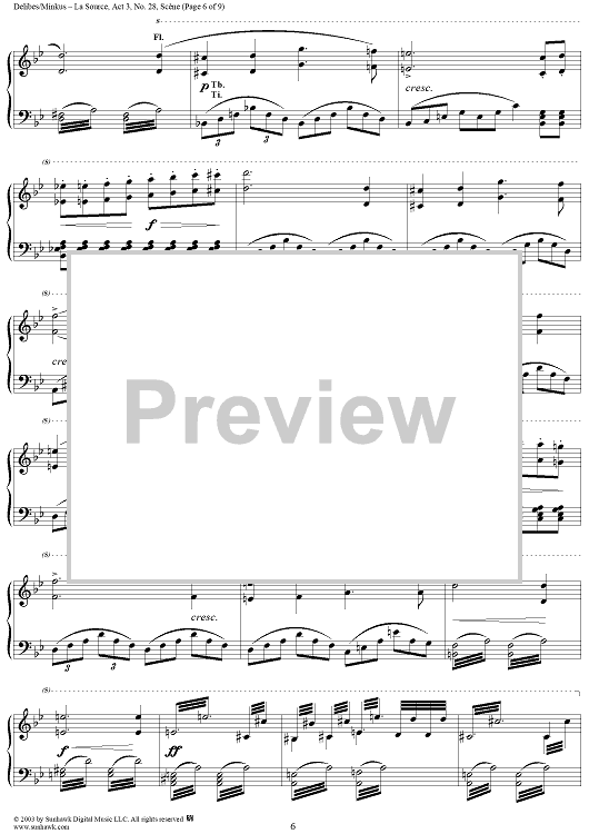 Digital Sheet Music for La Source, Act 3, No. 28: Scène by Léon Minkus, Leo Delibes scored for Piano Solo; id:295505