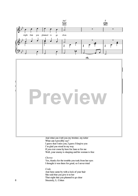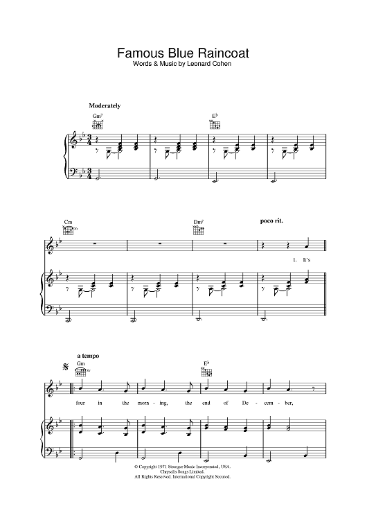 Digital Sheet Music for Famous Blue Raincoat by Leonard Cohen scored for Piano/Vocal/Chords; id:387854