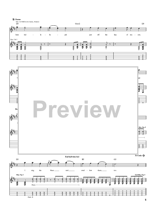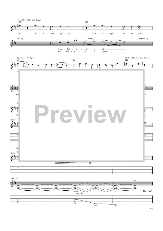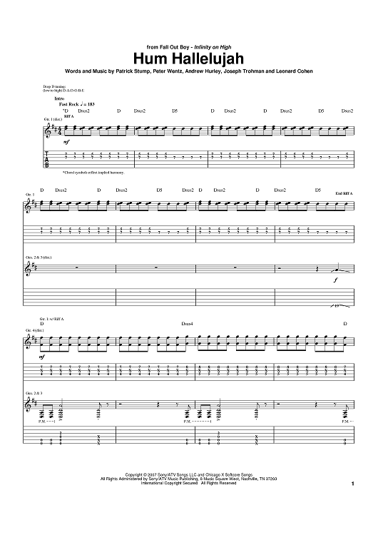 Digital Sheet Music for Hum Hallelujah by Patrick Stump, Peter Wentz, Andrew John Hurley, Joseph Trohman, Fall Out Boy, Leonard Cohen scored for Guitar Tab; id:401470