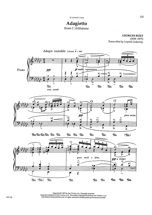 Digital Sheet Music for Adagietto from L'Arlésienne by Georges Bizet, Leopold Godowsky scored for Piano Solo; id:439537