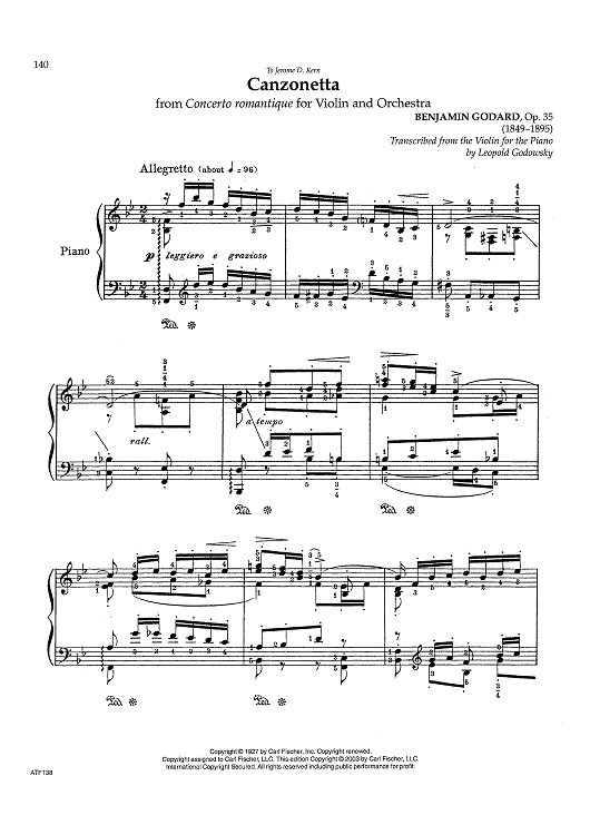 Digital Sheet Music for Canzonetta - from Concerto romantique for Violin and Orchestra by Benjamin Godard, Leopold Godowsky scored for Piano Solo; id:439539